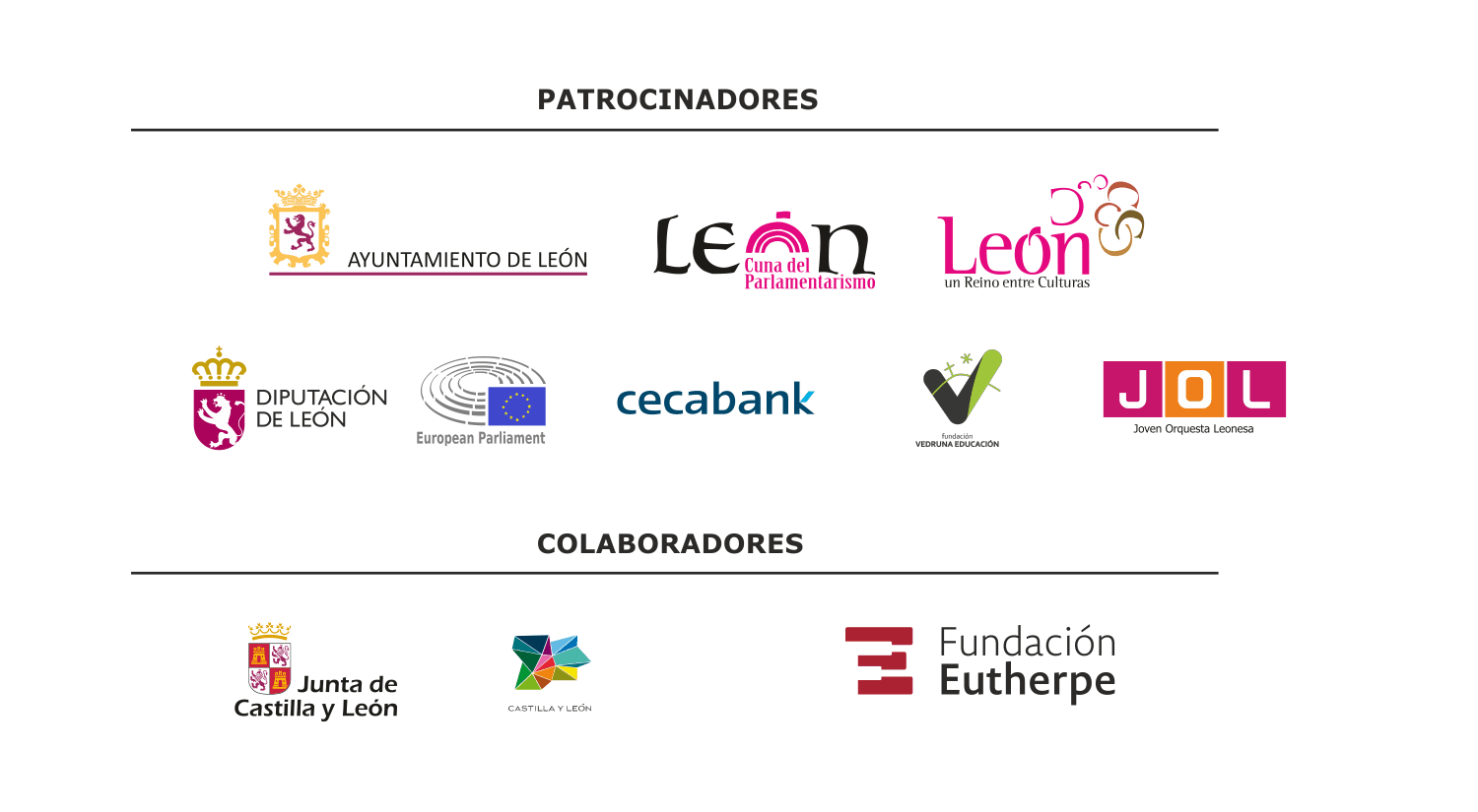 Hotel Conde Luna • Residencia de San Francisco • Conservatorio Profesional de Música de León "Castro Ovejero" • Auditorio “Ángel Barja” • Diario de León • La Nueva Crónica • Gente León • Medios de Comunicación de León • Asesoría Barroso • Colegio Ntra. Sra. del Carmen y Colegio Sagrado Corazón (León) • Asociación Joven Orquesta Leonesa